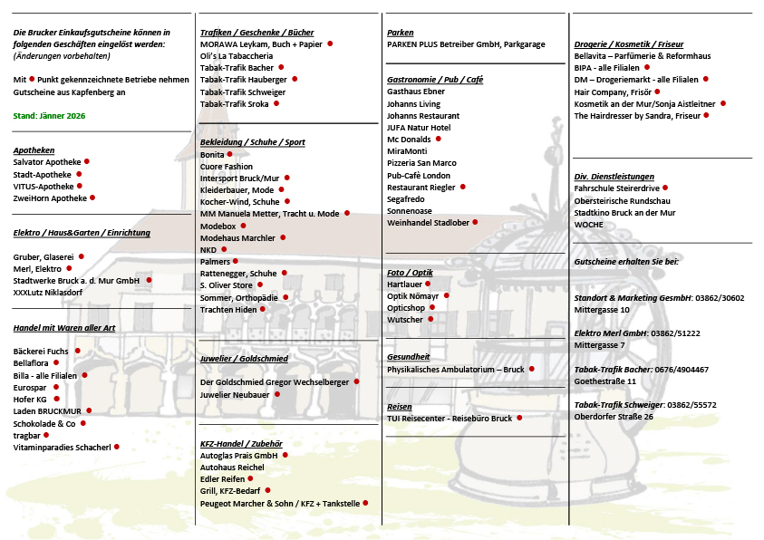 Einlösestellen der Brucker-Gutscheine